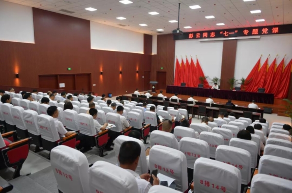 专题党课最后,彭云带领与会党员干部代表集体诵读习近平总书记在庆祝中国共产党成立100周年大会上重要讲话部分内容:“全体中国共产党员!党中央号召你们,牢记初心使命,坚定理想信念,践行党的宗旨,永远保持同人民群众的血肉联系,始终同人民想在一起、干在一起,风雨同舟、同甘共苦,继续为实现人民对美好生活的向往不懈努力,努力为党和人民争取更大光荣!”