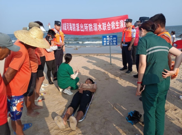“发现溺水、下海救人、心肺复苏、紧急送医……”近日,秦皇岛市公安局北戴河新区分局南戴河海防派出所联合120、海警、仙螺岛景区以及辖区义警等部门和组织开展了夏季防溺水救生演练。