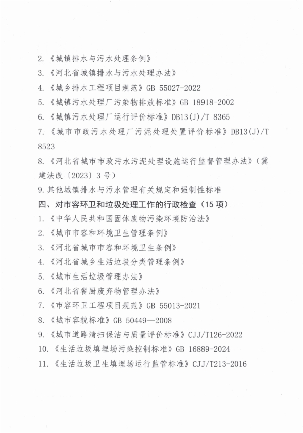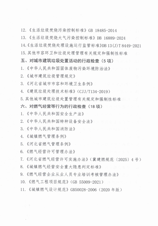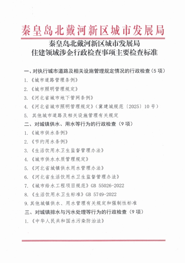 北戴河新区城市发展局住建领域涉企行政检查事项主要检查标准