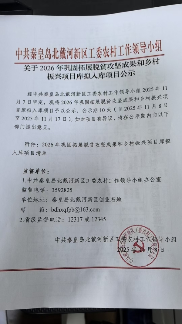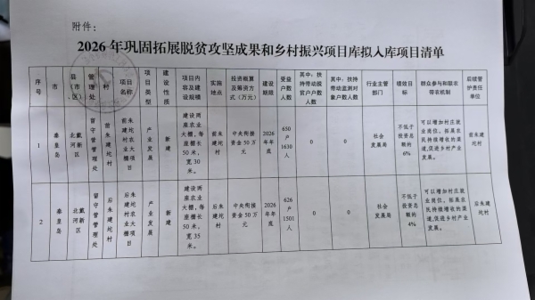 关于2026年巩固拓展脱贫攻坚成果和乡村振兴项目库拟人库项目公示